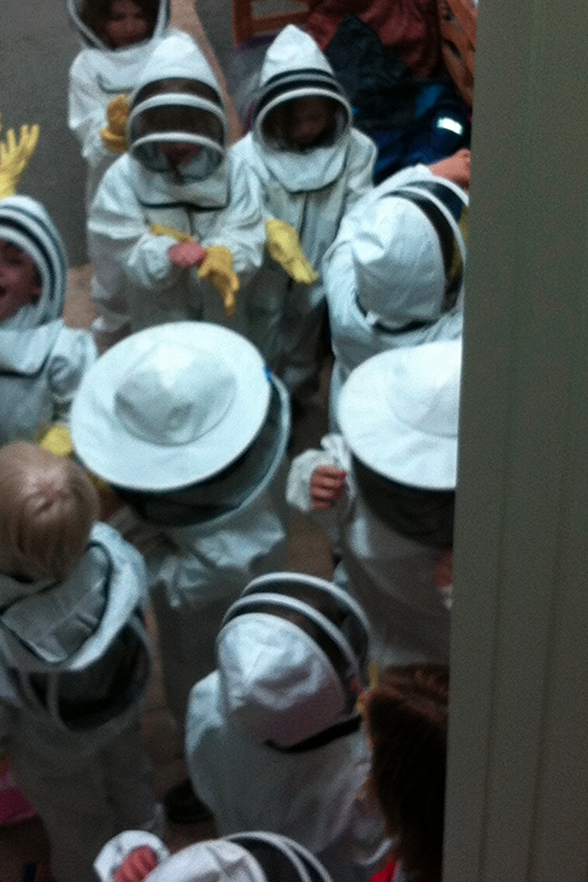 I discovered a new "whiteness" in the hallway at my studio the other day; a swarm of children were ready to harvest honey from our Nature School's beehives.