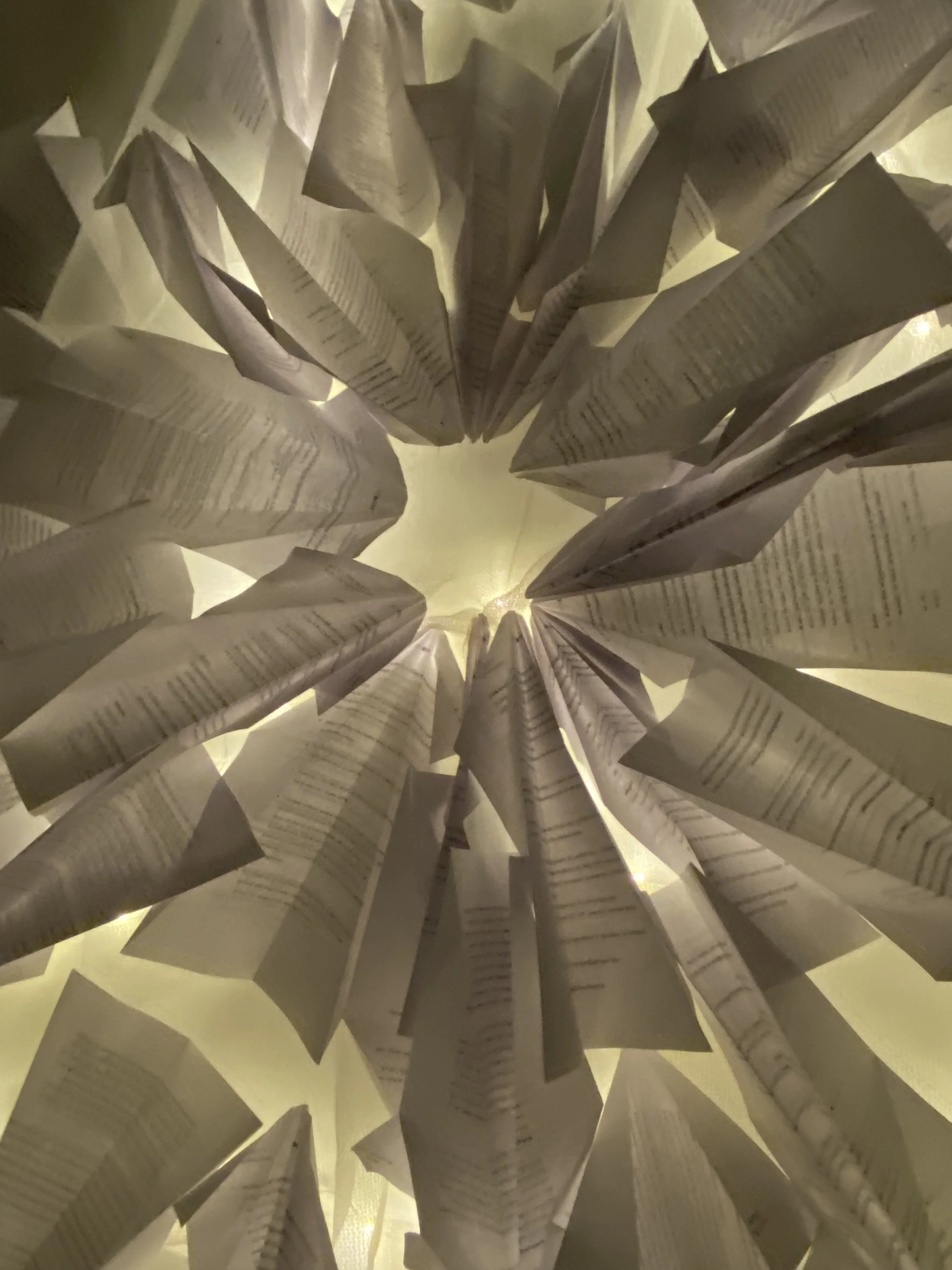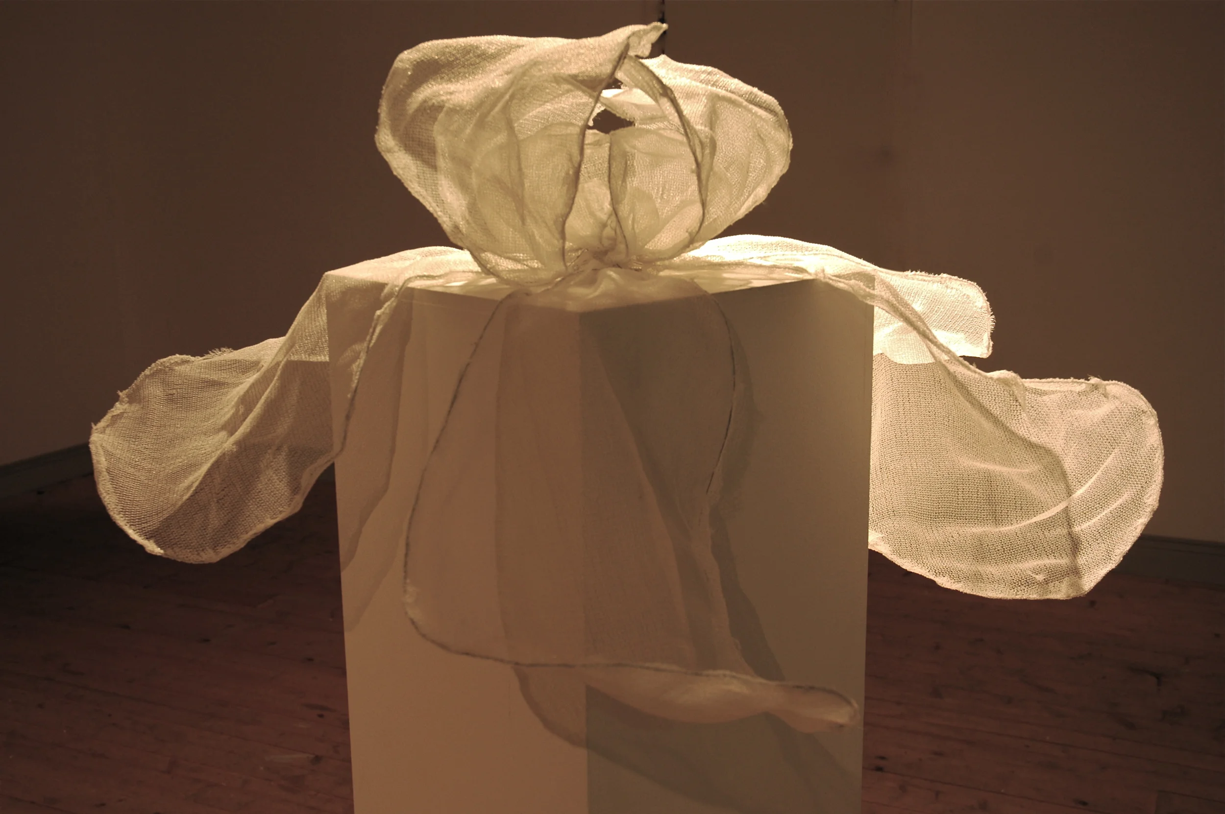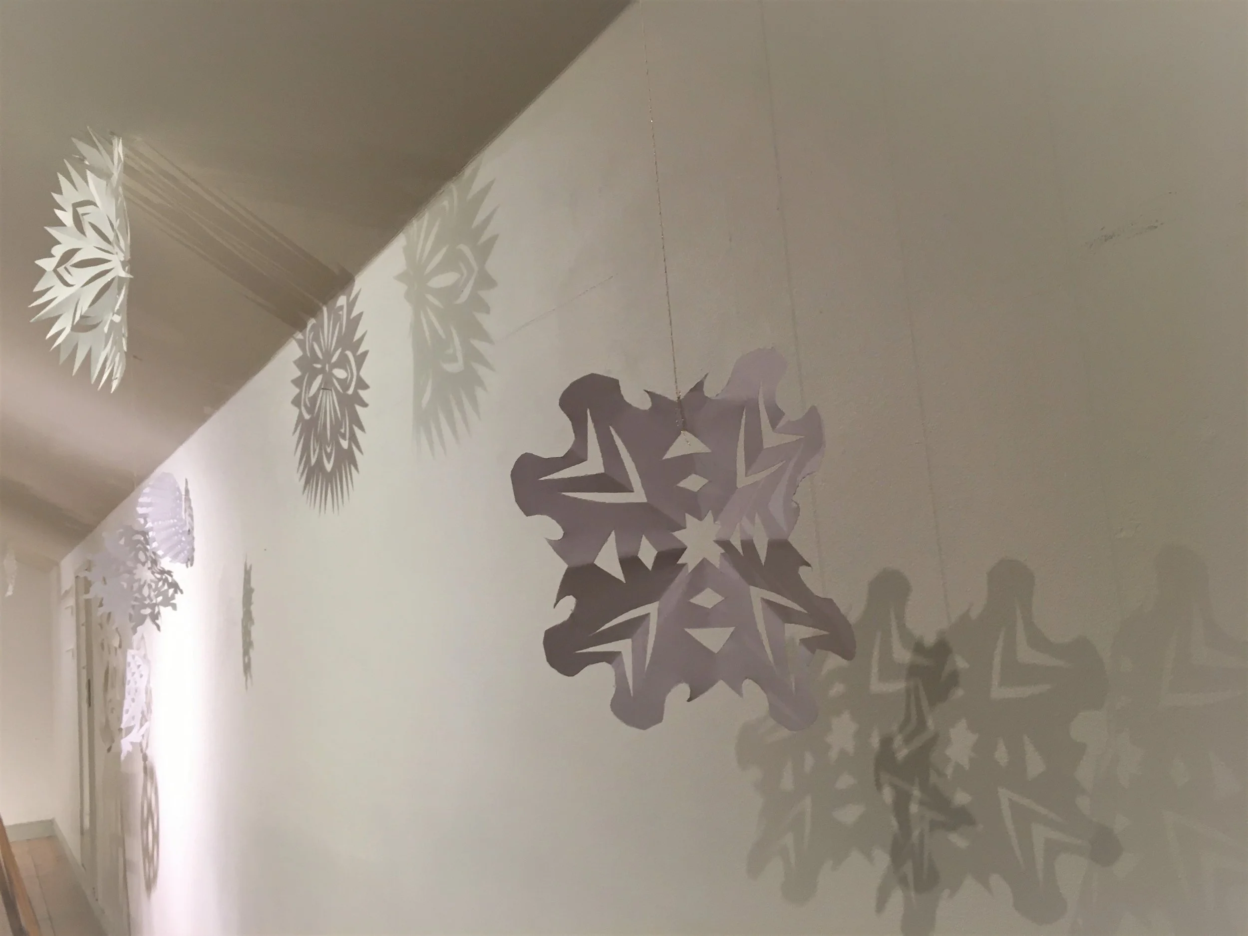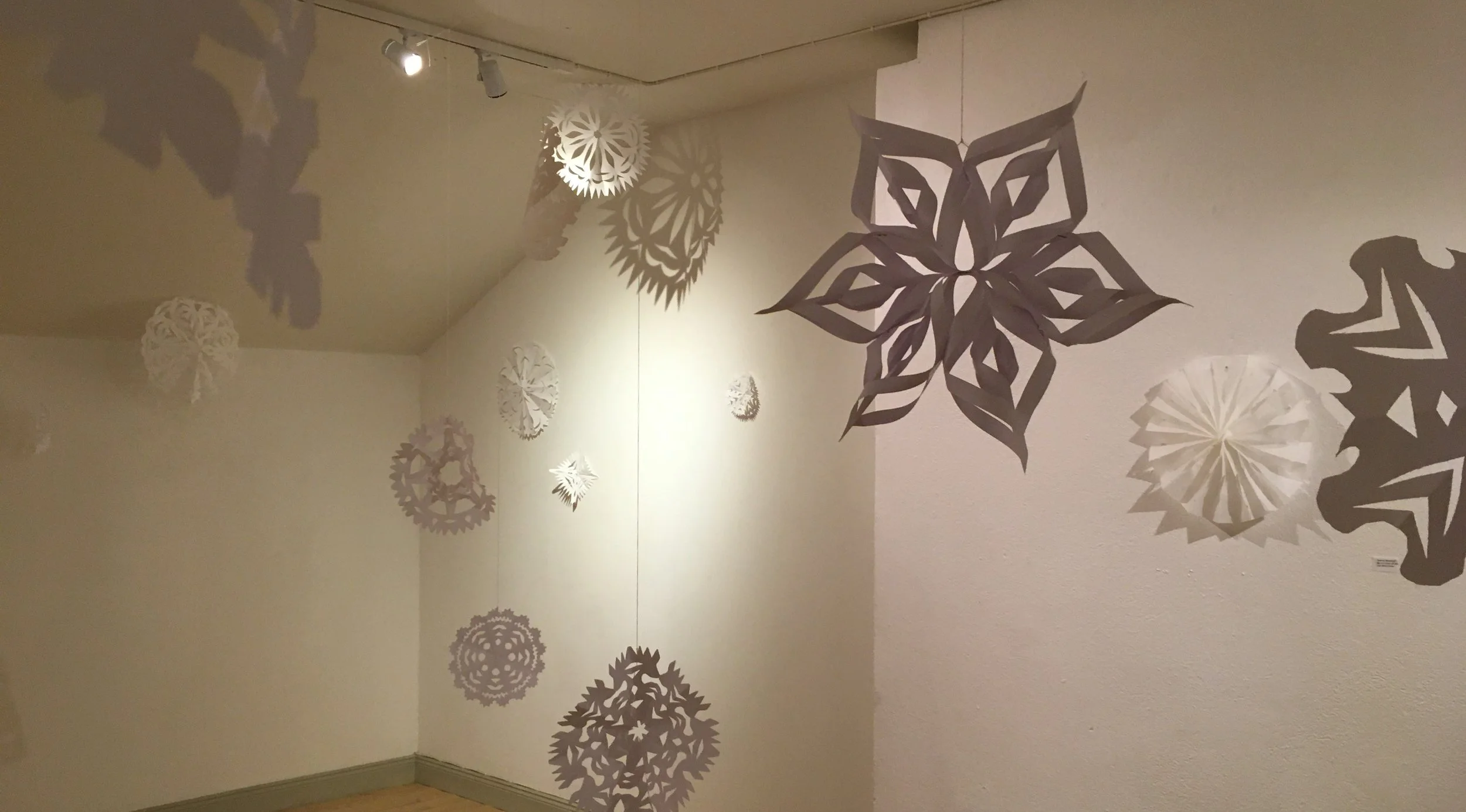 This Interactive Installation and Happening involves the viewer as part of the artwork as they wonder through the work and are challenged to participate in adding to the installation. This process reflects the evolution of the winter season.
